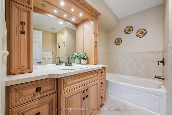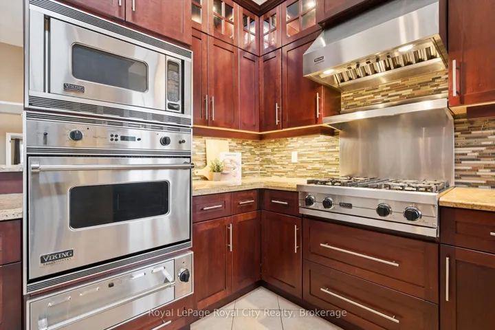 +"PublicRemarks": "Rarely offered and beautifully finished from top to bottom, this exceptional end-unit walkout freehold bungaloft offers over 3,200 sq ft of thoughtfully designed living space in one of Guelph's most desirable South End locations. Offering incredible flexibility, this home is ideal for families, multi-generational living, retirees seeking main-floor convenience, or anyone needing space to work and live comfortably. The grand main floor welcomes you with soaring 16-foot ceilings and a bright, open-concept layout perfect for everyday living and entertaining. The gourmet kitchen features built-in stainless steel appliances, granite countertops, a breakfast bar, and ample cabinetry, flowing seamlessly into the living and dining areas highlighted by a cozy gas fireplace. The spacious primary suite offers his and hers closets and a private 4-piece ensuite. A generous office (currently used as a second bedroom), powder room, and convenient main-floor laundry with garage access complete the level. Upstairs, the loft with skylight provides a perfect lounge or reading space, alongside a bright third bedroom with walk-in closet and a full 4-piece bathroom. The fully finished walkout basement adds exceptional living space and versatility, featuring a custom wet bar, large recreation and family areas, a full bathroom, and two additional rooms ideal for a gym, media room, office, or guest space - easily accommodating extended family or teenagers. Professionally landscaped gardens lead to a private, fully fenced backyard with patio stone seating and a custom composite deck complete with a 12' x 14' Yardistry pergola and mood lighting, creating a beautiful outdoor retreat for summer entertaining. Quietly tucked at the corner of a peaceful street while just steps to South End shopping, excellent schools, trails, transit, and easy highway access, this home offers the perfect balance of privacy and convenience."