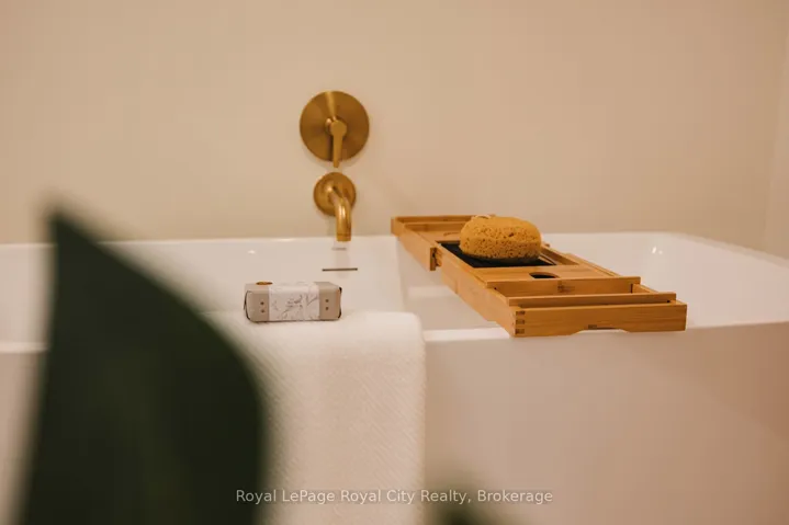 +"PublicRemarks": "Welcome to The Foundry at Elora Mill Residences, an art collectors dream and your opportunity to own one of the most private layouts in the entire complex. This stunning one-bedroom plus den residence offers over 1,400 sq. ft. of thoughtfully designed living space, with a 200+ sqft private outdoor terrace. Both the living room and bedroom feature garden door walkouts, seamlessly connecting you to your terrace and the scenic pathway along the rivers edge.The extensively upgraded interior is equally impressive. A formal entryway with a double-door closet and a luxurious 155 sq. ft. foyer sets the tone, perfect for welcoming guests and keeping your space beautifully organized, a storage opportunity rarely found in condo living. Just beyond the entrance, you will find a self contained Laundry Room, a Study, perfect for a home Office or a Guest room and a 3pc bathroom with elegant finishes, heated floors and automated toilet. Continuing down the hall, enter the Kitchen, with an impressive design that showcases chic finishes alongside top-of-the-line Miele appliances and numerous cabinetry upgrades that offer convenience and functionality to this stunning work space. The quiet serenity of the trees along the Grand River set the backdrop for the open concept living space, with 3 oversized garden Windows, the Living and Dining areas have an abundance of natural light. The primary Bedroom with the luxurious garden door walkout, and a walk-through dressing room leading to the 5 piece Ensuite with large glass shower, stand alone soaker tub, automatic toilet, double sink, hardwired magnifying mirror and heated floors. Pre-wired for Electric Blinds, though as mentioned above, this location is very private."