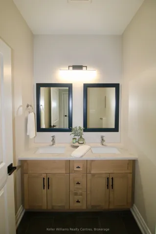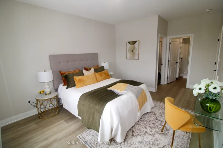 +"PublicRemarks": "Brand new semi-detached bungalow with walkout basement by Candue Homes! Backing onto mature trees this home is thoughtfully designed, blending modern finishes with a peaceful natural setting. The bright, open living room features a stylish shiplap fireplace and a walkout to the covered back deck, creating a seamless indoor-outdoor connection with tranquil treed views. The kitchen is finished with quartz countertops, a tile backsplash, and all appliances included.The primary bedroom has a walk-in closet with custom organizers and a beautifully finished ensuite bathroom featuring double sinks and a custom tiled shower. Practical touches include main-level laundry and an attached garage. The lower level expands your living space with a spacious recreation room and walkout to the backyard with a concrete patio. On this level you'll also find a 3rd bedroom & bathroom, plus ample storage, making it a great space for hosting guests. Outside, the builder includes a paved drive, fully sodded lot, and a fence along the east side of the back yard for added privacy. Cedar trees will be planted along the inside of the retaining wall at the back. * The listed price reflects the HST New Housing Rebate. If the property is not being purchased as a primary residence or long term rental, the buyer will be required to pay the full 13% HST.*"