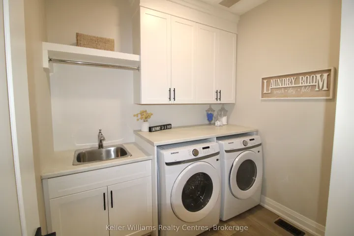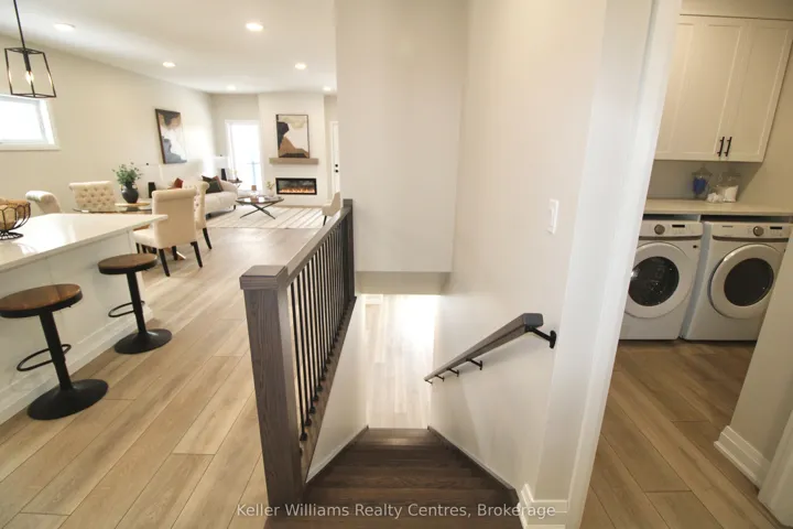 +"PublicRemarks": "Brand new semi-detached bungalow with walkout basement by Candue Homes! Backing onto mature trees this home is thoughtfully designed, blending modern finishes with a peaceful natural setting. The bright, open living room features a stylish shiplap fireplace and a walkout to the covered back deck, creating a seamless indoor-outdoor connection with tranquil treed views. The kitchen is finished with quartz countertops, a tile backsplash, and all appliances included.The primary bedroom has a walk-in closet with custom organizers and a beautifully finished ensuite bathroom featuring double sinks and a custom tiled shower. Practical touches include main-level laundry and an attached garage. The lower level expands your living space with a spacious recreation room and walkout to the backyard with a concrete patio. On this level you'll also find a 3rd bedroom & bathroom, plus ample storage, making it a great space for hosting guests. Outside, the builder includes a paved drive, fully sodded lot, and a fence along the east side of the back yard for added privacy. Cedar trees will be planted along the inside of the retaining wall at the back."