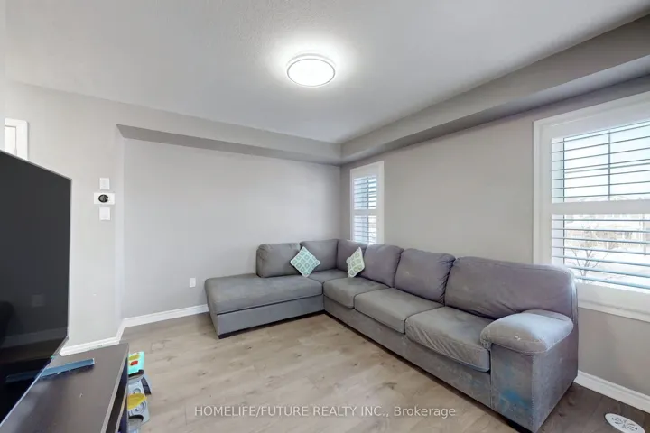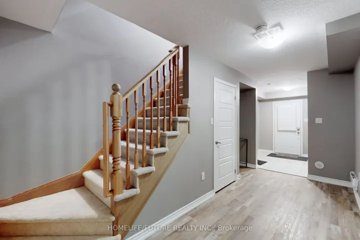 +"PublicRemarks": "Modern & Refreshed Townhouse In Ancaster's Prestigious Meadowlands Recently refreshed with new contemporary light fixtures throughout and professional paint touch-ups, this well-maintained townhouse offers a bright, clean, move-in ready living space.Backing onto mature trees with no direct neighbors in front or behind, the home provides privacy and a peaceful setting. The wide driveway, attached garage, and convenient visitor parking directly in front of the home add everyday practicality.The open-concept layout features an oversized living room with a large window, durable waterproof flooring complemented by oak stairs, and a bright white kitchen with quartz counters and extended-height cabinetry. The dining area walks out to a private balcony overlooking mature trees, creating a comfortable indoor-outdoor flow.All bathrooms include quartz counters and upgraded fixtures. The primary bedroom offers a walk-in closet and an upgraded ensuite shower, along with newly installed wall-mounted bedside lighting for added comfort and convenience.The fully finished walk-out basement provides additional flexible living space with access to the yard and garage, ideal for a home office, recreation area, or extended family use.Ideally located just three minutes to Hwy 403 and the Linc, within walking distance to Tiffany Hill Elementary School and park, and only a five-minute drive to Costco, Cineplex, Sobeys, and major amenities.A clean, thoughtfully updated home in one of Ancaster's most desirable communities."