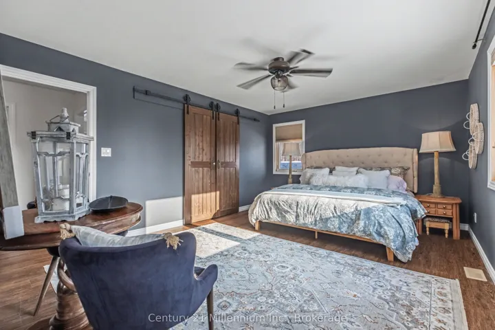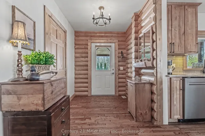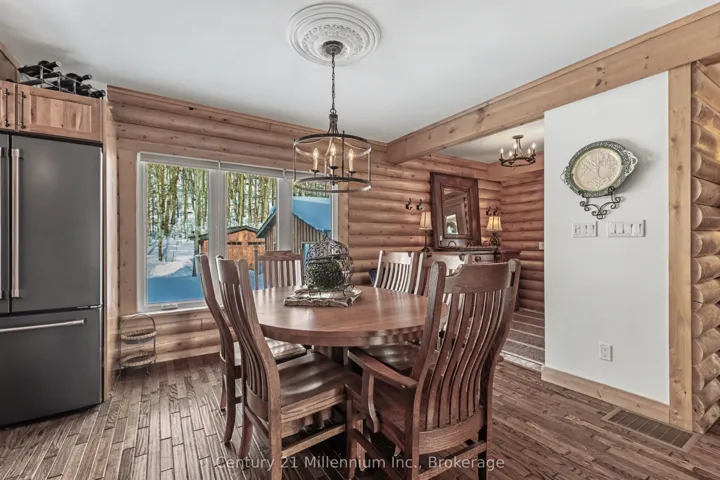 +"PublicRemarks": "This stunning log home is nestled on the escarpment, offering seasonal water views of Colpoy's Bay, and breathtaking sunrises. With water access just a stone's throw away, this property is the perfect retreat for nature lovers and outdoor enthusiasts. Recent updates have transformed this home into a modern oasis. The main floor features new fiberglass, wood look, exterior doors, light fixtures and cafe appliances, creating a bright and inviting space for entertaining or relaxing. Step outside onto the wrap-around covered porch and take in the serene surroundings of the beautifully landscaped gardens. The entire upstairs has been renovated, including new LVP floors throughout, two new bathrooms, including the luxury Master Ensuite and a walk in closet with custom built ins. The detached garage offers versatility, with the option to use it as an entertainment area complete with a wood stove, or as a parking space for two cars. Additional storage sheds provide ample space for all your outdoor equipment and tools. Don't miss out on the opportunity to own this idyllic log home with all the modern conveniences you could ask for."