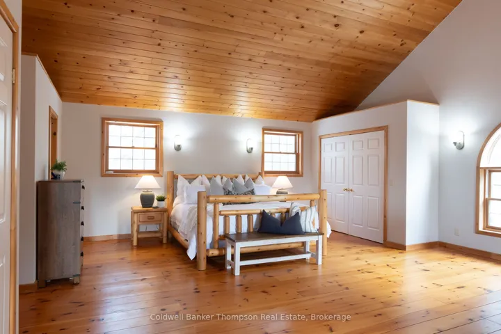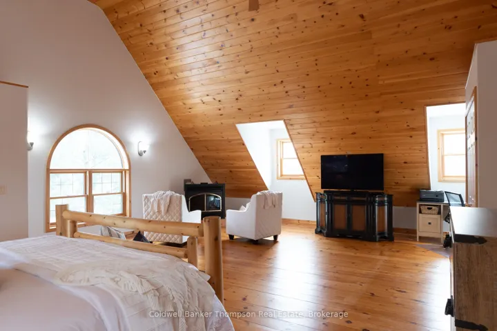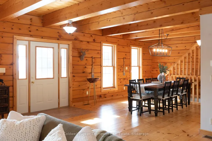 +"PublicRemarks": "Tucked at the end of a quiet cul-de-sac in the sought-after Riverview Estates subdivision, this beautifully crafted log home by True North Log Homes offers nearly 200 ft of frontage on the Muskoka River with direct access to Huntsville's 4-lake chain & over 40 miles of boating. A full length covered porch welcomes you on the road side, while inside the main floor features an open-concept living, dining & kitchen area centred around a stunning stone natural gas fireplace. The kitchen is complimented by a large pantry for everyday ease. From the kitchen, step out to the riverside deck with a convenient natural gas BBQ hookup, perfect for easy summer evenings by the water. A 2-pc powder room is conveniently located on the main floor, and a separate hall closet houses the stackable laundry & laundry sink. Upstairs, the spacious primary suite offers soaring cathedral ceilings, double closets, a cozy natural gas fireplace, a 6-pc ensuite & serene views of the surrounding trees. A guest bedroom & 4-pc bath complete the second floor. The fully finished walkout basement adds a large rec room, third bedroom & another 4-pc bath, ideal for family or visitors. A double car detached garage provides ample parking and storage. Outside, enjoy fabulous water views from your private dock, with a shallow area for kids to play & deeper water at the end for swimming. The oversized dock of over 30ft in length means there is plenty of room to dock your boat. Serviced by a drilled well, septic, municipal natural gas & curbside sanitary collection, and located close to Riverside Public School & Huntsville High School, this property blends the warmth & character of log home living with the convenience of being just minutes to town, an exceptional home or cottage opportunity."