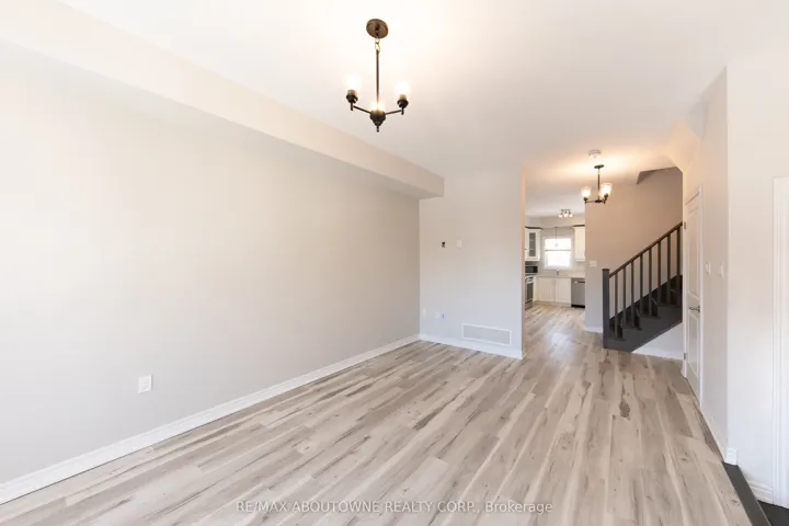 +"PublicRemarks": "Modern & Refreshed Townhouse In Ancaster's Prestigious Meadowlands Recently refreshed with new contemporary light fixtures throughout and professional paint touch-ups, this well-maintained townhouse offers a bright, clean, move-in ready living space.Backing onto mature trees with no direct neighbors in front or behind, the home provides privacy and a peaceful setting. The wide driveway, attached garage, and convenient visitor parking directly in front of the home add everyday practicality.The open-concept layout features an oversized living room with a large window, durable waterproof flooring complemented by oak stairs, and a bright white kitchen with quartz counters and extended-height cabinetry. The dining area walks out to a private balcony overlooking mature trees, creating a comfortable indoor-outdoor flow.All bathrooms include quartz counters and upgraded fixtures. The primary bedroom offers a walk-in closet and an upgraded ensuite shower, along with newly installed wall-mounted bedside lighting for added comfort and convenience.The fully finished walk-out basement provides additional flexible living space with access to the yard and garage, ideal for a home office, recreation area, or extended family use.Ideally located just three minutes to Hwy 403 and the Linc, within walking distance to Tiffany Hill Elementary School and park, and only a five-minute drive to Costco, Cineplex, Sobeys, and major amenities.A clean, thoughtfully updated home in one of Ancaster's most desirable communities."