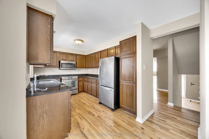 +"PublicRemarks": "Affordable Bright North London Townhome Backing onto Dream Greenspace. Large 5-Level Back Split, 3 Bedroom, 4 Bathroom (2 Full / 2 Guest) with Oversized Single Car Garage. Lower Level Provides Bright Patio Doors with Excellent Forest Views and Bonus Murphy Bed for Additional Guest Room Space. Lower Level also Includes Guest Bathroom and a Laundry / Utility Room. Ground Level has a Large Foyer, Inside Access to the Garage and a Convenient Coat Closet. Main Level has a Bright Large Family Room with Gas Fireplace, Cathedral Ceilings, Motorized/Remote Custom Blinds, Custom Cabinetry and Large Patio Doors that Lead to an Ample Forest View BBQ Deck, with BONUS Natural Gas BBq Hook-up. Next Level Up has a Guest Bathroom, a Dining Area that overlooks the Family Room, and a Large Renovated Eat-In Kitchen Complete with Quartz Countertops and Stainless Steel Appliances. Upper Floor Contains 3 Bedrooms with a Large Master Backing onto the Forest. Master Bedroom Includes Walk-In Closet and Renovated Ensuite Bathroom. The Upper Level also contains an Addition 4-piece Bathroom. Excellent School, and Walking Distance to an Off-Leash Dog Park. Great Access to UWO, and Masonville Shopping & Restaurants. Large Home that Will Meet All Your Needs."