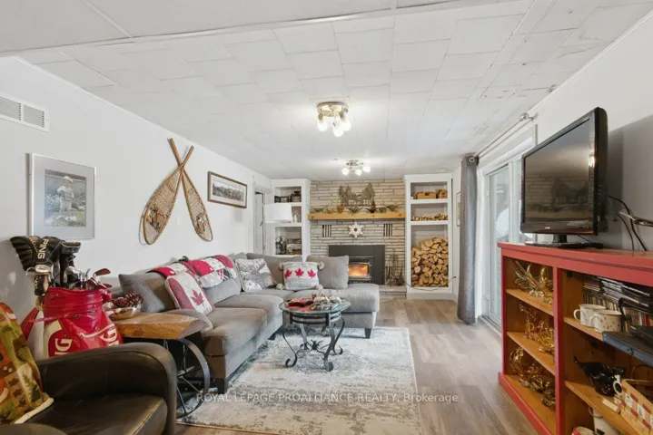 +"PublicRemarks": "Enjoy comfortable main floor living in this well-appointed home featuring two main floor bedrooms, with a primary suite complete with a private ensuite. Main floor laundry adds to the ease of everyday living. The bright kitchen offers an abundance of cupboards, providing plenty of storage and workspace. Relax in the inviting living room highlighted by a electric fireplace (no heat) and a beautiful view of the Trent River. The finished above-ground lower level expands your living space with a generous rec room, featuring a walk out, wood stove, an additional den, and a large workshop/garage ideal for hobbies, storage, or projects. Step outside to a peaceful backyard overlooking a wooded area, offering privacy and a serene natural setting. This home combines practicality, comfort, and scenic views-perfect for relaxed living both indoors and out."