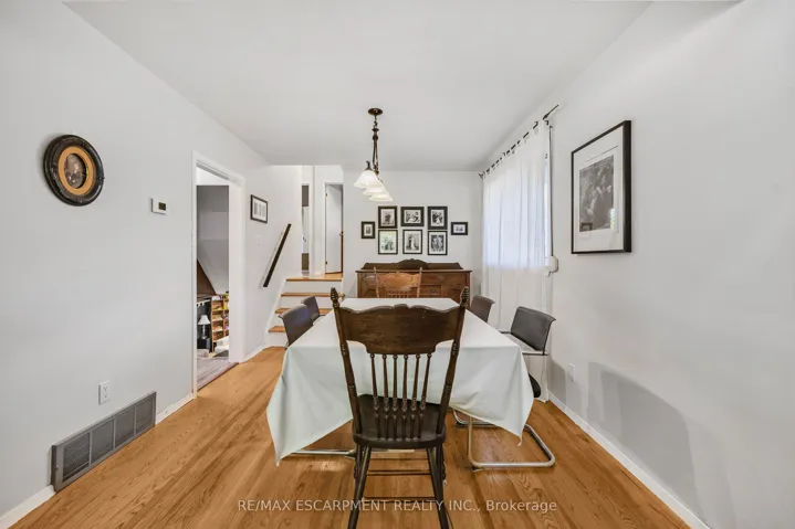 +"PublicRemarks": "This charming and immaculately maintained 4-level backsplit is located in the heart of Dundas' coveted Pleasant Valley neighbourhood, known for its scenic escarpment setting, mature tree canopy, and easy access to trails and conservation areas. Offering comfort, space, and serenity, the home features original hardwood flooring in the bright and airy living and dining rooms as well as all bedrooms, lending timeless character throughout. The expansive family room includes a cozy gas fireplace, a versatile office nook, and a walkout to a beautifully treed, landscaped backyard-an ideal space for relaxation or entertaining. Recent updates include a newer furnace, central air conditioner, and electrical panel (2020), along with a refreshed 3-piece bathroom (2025) and a brand new roof (2025) providing peace of mind! The lower level provides a laundry area, utilities, a dedicated workshop, and incredible storage adding both functionality and potential. Tucked away on a wonderful street, this family-friendly location is just steps from the Dundas Valley Rail Trail and minutes from the Dundas Conservation Area, downtown shops and cafés, and top-rated schools. With quick access to Mc Master University, transit routes, and commuter highways, this move-in ready home offers the perfect blend of small-town charm and modern convenience-with room to customize to your taste."