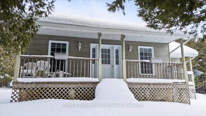 +"PublicRemarks": "Privacy, acreage, and proximity to skiing come together here in Grey Highlands. Set nicely back from the road and tucked into the trees, this adorable 920 sq ft bungalow feels quiet and comfortable without feeling remote. The main level is open concept and thoughtfully laid out, with 2 bedrooms and a full bathroom with combined laundry. It's not large, but it lives well. A welcoming front porch adds character, and the second front entrance functions perfectly as a practical mudroom entrance. Off the dining area, a small deck overlooks the backyard, a peaceful spot for morning coffee or unwinding at the end of the day. The walkout basement is insulated and ready for whatever you envision next. With a wood stove already in place, there's strong potential to create a third bedroom, rec room, office, or additional flexible space. Move in and enjoy it as is, or finish the lower level over time. The 50-acre parcel is mostly treed, offering privacy and the potential for natural trails. In the back corner, approximately 4 acres are open field, adding meaningful usable space for hobby farming, recreation, or future plans. Closer to the home, the yard provides excellent potential for flower beds, vegetable gardens, or expanded outdoor living areas. A detached 950 square foot garage, 38' by 25', plus a lean-to at the rear for storage, provides excellent space for vehicles, tools, or recreational equipment. Located just 12 minutes to Markdale and 10 minutes to Beaver Valley Ski Club, you're close to amenities and year-round recreation while still enjoying the calm of the countryside. If you thought a country property on acreage was out of reach, this is a practical way to step into the market without overextending. Current property taxes reflect participation in a conservation plan and farm tax classification for the open field."