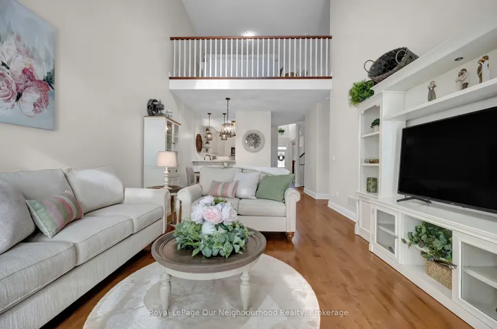 +"PublicRemarks": "Spacious 2-storey end-unit condo townhouse providing 2946 sq ft of beautifully updated living space in sought-after Ancaster. This bright and airy home features vaulted ceilings, oversized windows and an abundance of skylights, filling the interior with natural light. Thoughtfully designed layout includes a ground-floor family room with cozy gas fireplace, as well as separate living and dining rooms ideal for entertaining. Elegant ash flooring runs throughout the first and second floors. The stunning renovated kitchen showcases white high-gloss cabinetry, a full pantry wall, premium quartz countertops, glass backsplash, pot lights, and top-of-the-line stainless steel AGA appliances. The basement was renovated in 2020, featuring a spacious recreation room, office space, additional bedroom, and a large 3-piece bathroom. A rare opportunity to enjoy spacious, low-maintenance living (including snow removal from driveway and walkway), close to highway access, shopping, and amenities in one of Ancaster's most desirable neighborhoods. RSA. SQFTA."