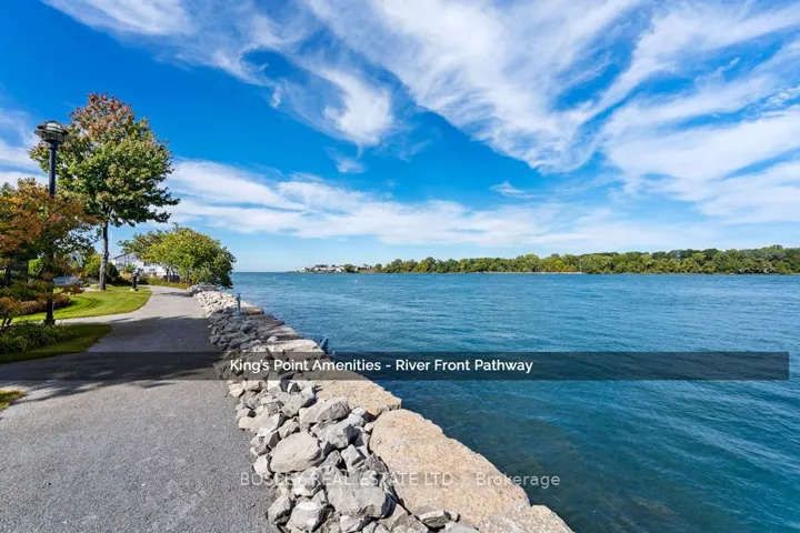 +"PublicRemarks": "Welcome to King's Point -- luxury condominium waterfront living along the Niagara River and in the heart of the Old Town. This upgraded ground floor 1,500 sq ft, 2 bed, 2 bath suite features a spacious living and dining area with a walk out to a large private terrace with a view of the Niagara River. A contemporary, open concept kitchen features over 20 ft of granite countertop with breakfast bar. Included are 9-foot ceilings, gas fireplace, in-suite separate laundry closet, a large pantry and floor to ceiling windows. The primary bedroom offers an extra large walk in closet and ensuite with a large walk-in shower and linen closet. The second bedroom overlooks a private atrium and easily serves as a home office or den. This secluded side of the King's Point complex provides a treed landscape and relaxing "cottage" feel. Enjoy the morning sun with this south east exposure. King's Point amenities include an outdoor salt water pool and spa, Muskoka Chair Terrace overlooking the Niagara River, BBQ Terrace, award-winning gardens, exercise room, Guest Suite booking privileges, underground parking, bike storage, and underground car washing bay. Bell Fibe Internet and TV is included in your condo fees."