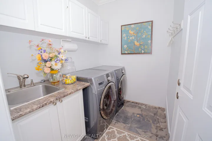 +"PublicRemarks": "Boasting 4 bedrooms plus a den, 3.5 baths, a sauna & hot tub, this home is a true retreat. Enjoy the outdoor oasis with interlocking stone details, a tranquil pond, a covered portico, and an inground sprinkler system. Inside, you will find vaulted ceilings, maple hardwood floors on the main and upper levels, and a stunning maple and wrought iron staircase. The dream kitchen features a statement double island, quartz countertops, and ample space for entertaining. Relax by any of the 3 fireplaces or unwind in the ultimate 'man cave' or 'lady lair' with a bar, lounge, and games area. This home also offers a 2-car garage, surround sound, pot lights, travertine finishes, and an abundance of crown molding. Located just steps from the lake and conservation area, with easy access to the QEW, shopping, and dining, this is truly a must-see property. Too many updates and features to list!"
