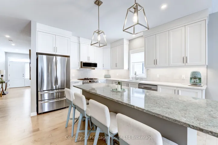 +"PublicRemarks": "Why build when every upgrade is already complete? This exceptional 3-year-old bungalow in prestigious Northcrest Estates offers designer-level finishes, premium upgrades, and turnkey convenience - without the wait, added expense, or construction uncertainty. Featuring 9-foot ceilings and enlarged windows throughout, the home is filled with natural light and elevated by maple hardwood flooring, 12x24 tile in wet areas, and refined modern finishes. The custom kitchen is a true showpiece with upgraded quartz countertops (including an enhanced island profile), taller cabinetry with crown mouldings, oversized island with wine fridge, double garbage pullout, spice pullout, rollouts, and premium sink and fixtures. The main level offers main floor laundry, a beautifully upgraded primary suite with a 5-foot acrylic shower, quartz surfaces, under-mounted sinks, and comfort-height fixtures - all thoughtfully selected for both elegance and comfort. The partially finished lower level adds a spacious rec room with upgraded pot lighting, an additional bedroom with enlarged egress windows, and future bath already roughed in - ideal for guests or extended family. Exterior upgrades are equally impressive: over-sized 2-car garage, concrete driveway and walkway, upgraded deck expanded to 21 x 14 with privacy shutters, gazebo, professional landscaping, fencing, and mature privacy plantings including blue spruce and dappled willow tree. Enjoy some of the breath-taking sunsets in Southern Ontario. Custom wall unit with electric fireplace, enhanced lighting, and countless post-build improvements, this home delivers the quality and sophistication buyers expect in the luxury market. Move in and enjoy - every detail has already been done."