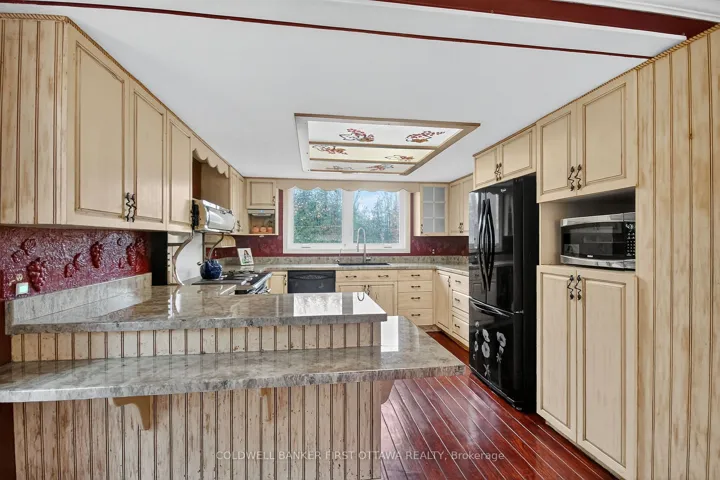+"PublicRemarks": "Nestled on a serene wooded lot, this charming country home offers a unique blend of eclectic design and modern amenities across multiple levels. Featuring a large country kitchen, you'll find it well-equipped with pull-out cabinets and the vintage appeal of an Elmira Heritage Collection cookstove-perfect for culinary enthusiasts! The home boasts a large dining room providing a warm atmosphere with stunning views of the surrounding woods. The sunken living room is a cozy retreat, leading seamlessly to a screened porch, ideal for enjoying tranquil evenings. With two generously-sized bedrooms, the house also includes renovated bathrooms. The luxurious shower includes a rain shower head that mimics the soothing sensation of a gentle rainfall. Additionally, dual-zone shower heads allow for personalized water temperature and pressure adjustments, creating a spa-like experience right in your home., There are two other bedrooms that offer flexibility and space for family or guests. The informal family room is centred around a welcoming wood stove, creating a perfect spot for gathering during colder months. With convenient access to the garage, the property also presents the potential for an in-law suite or an excellent income opportunity. Whether you're seeking a peaceful retreat or a versatile family home, this property has it all. Located just 10 minutes from Ottawa and 10 minutes from Carleton Place, experience the charm and functionality of this delightful country home today!"