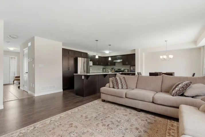 +"PublicRemarks": "Expansive 3-bedroom, 3-bathroom FREEHOLD end-unit townhome set within a prestigious Fonthill neighbourhood. Offering approximately 1,740 sq ft across two levels, this bright corner property includes a 1.5-car garage and outstanding value - with no condo fees. Welcoming front foyer with direct garage access. The main floor showcases an airy open-concept layout, featuring a kitchen with stainless steel appliances, stylish backsplash, abundant cabinetry and a 6-ft breakfast island. The dining area opens through sliding doors to a landscaped, fully fenced backyard. The upper level features three generously sized bedrooms, including a spacious primary retreat with walk-in closet and ensuite with glass shower. The second bedroom enjoys ensuite privilege to a 4-piece bath, and convenient second-floor laundry adds everyday functionality. The insulated basement offers excellent potential for future finishing. Ideally located close to shopping, schools, restaurants, parks, trails and a nearby dog park, with easy access to vineyard-lined roads, premier golf courses, and commuter routes to the QEW and Hwy 406."
