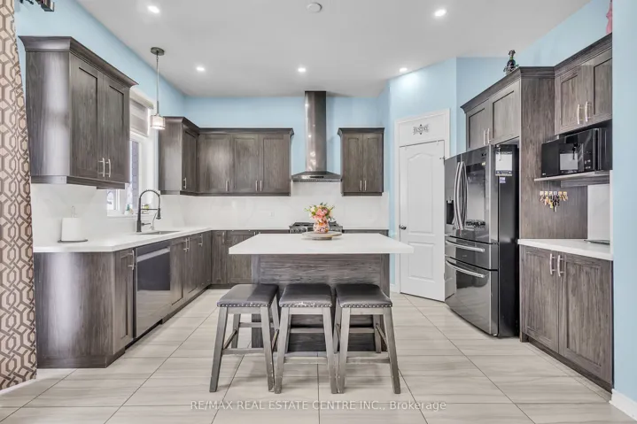 +"PublicRemarks": "Welcome to 438 Blair Creek Drive, Doon South - an extensively upgraded home offering approx. 3,148 sq. ft. of finished living space. The main level features 10-ft ceilings, new luxury vinyl flooring, and a striking two-sided gas fireplace serving the living and dining areas, creating a warm focal point within the open-concept layout. The chef's kitchen showcases quartz countertops, gas range, pantry, designer backsplash, and modern finishes. A rare main-floor bedroom with a full bath provides excellent flexibility for guests or multi-generational living.The upper level offers 9-ft ceilings, spacious bedrooms, and two primary suites-one with a walk-in closet and spa-inspired ensuite, and the second with his-and-her closets and private bath. The approx. 1,459 sq. ft. unfinished basement with 9-ft ceilings and bathroom rough-in presents excellent future potential. 200-amp electrical service supports modern living needs.Additional highlights include a double-wide extended driveway, epoxy-finished double-car garage, and a 35' x 15' aluminum-covered patio with concrete base, ideal for year-round entertaining. The private backyard backs onto the Doon South walking trail with mature cedar trees for added privacy. Conveniently located minutes to Hwy 401, major shopping, parks, and schools."