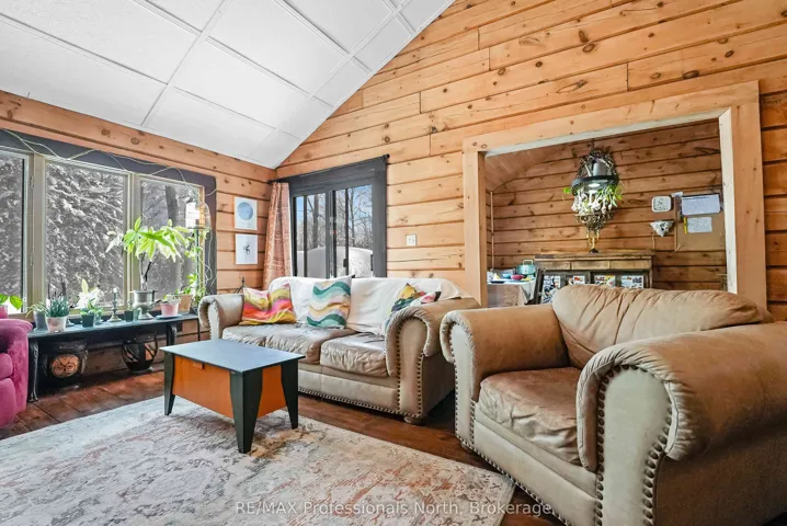 +"PublicRemarks": "Own over 22 acres of private Haliburton forest, trails, and water features with this rare dual-residence property. Centered around an authentic log home and a secondary bungalow, this estate offers a unique combination of rustic character and modern utility. Located just off Highway 118, the property provides a secluded natural setting with reliable year-round access, making it an ideal choice for multigenerational living or those seeking a home with built-in income potential. The primary log home spans three floors and features an updated kitchen and bathroom. The main living area is centered around a wood stove that enhances the rustic ambiance of the structure. The upper level contains two bedrooms, while the walk-out basement is fully utilized with a studio, workshop, and gym. This layout maximizes the footprint, offering dedicated spaces for both daily living and creative projects.The adjacent bungalow serves as a versatile secondary residence and is currently licensed by the municipality for short-term rentals. This single-story home includes one bedroom plus a den, a full kitchen, living room, and laundry facilities, making it fully self-contained and accessible. Whether used for guests, a tenant to offset the mortgage, or a professional studio, this building provides significant financial and functional flexibility.The expansive 22+ acre grounds are a highlight for nature enthusiasts, featuring a diverse landscape of mature trees and water elements that attract local wildlife. Picture the fun in the above ground pool with wood fired pool heater with pizza oven on top or at the fire pit after exploring the large scenic acreage. Situated in a county known for its vibrant arts community, this property offers the space and privacy needed for inspiration without sacrificing convenience. This is a practical opportunity to secure a large land holding with two established homes in a sought-after region. Must been seen in person to capture the beauty and opportunity!"