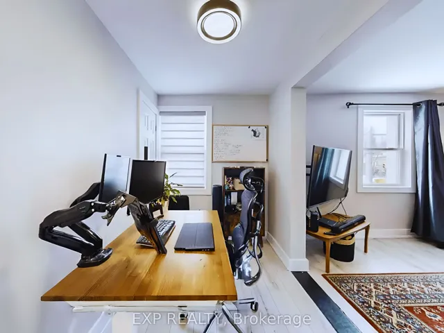 +"PublicRemarks": "Bright and spacious 3-bedroom, 1-bath second-storey apartment in a convenient Toronto location. Featuring a large entrance, this well laid-out unit offers generous principal rooms and an abundance of natural light throughout. The kitchen includes a stylish ceramic tile backsplash and space for an eat-in table. The rest of the rooms feature durable laminate flooring that runs throughout for easy maintenance. The oversized primary bedroom provides excellent comfort, and the additional rooms offer flexibility for a dining area, home office, or guest space to suit your lifestyle. Perfect for a family seeking space and functionality, with schools, parks, and an arena all nearby. Unbeatable transit access with streetcar service just steps away, a short ride to the subway, and quick access to major highways, making commuting across the city seamless. Walk Score is 99, Bike Score is 99, and Transit Score is 96, highlighting the exceptional convenience of this location. Fully furnished rooms are virtulyal staged."