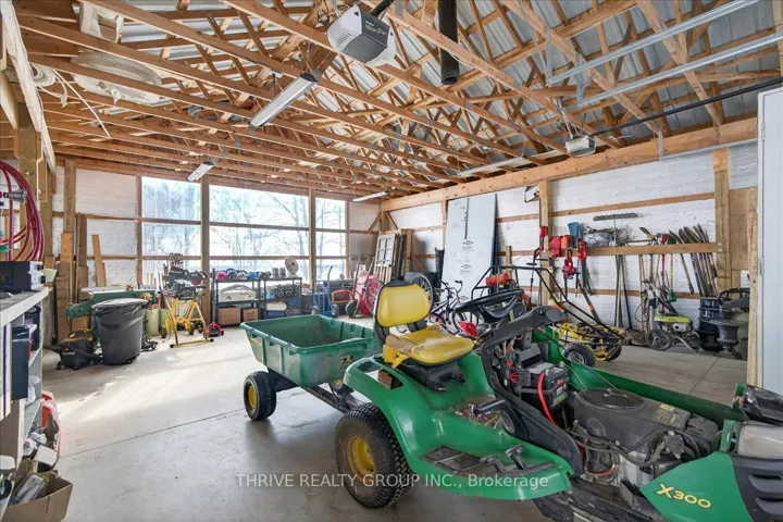 +"Exclusions": "Existing refrigerator and standing deep freezer in basement; lawnmower blade balancer in workshop; Dyson wall station in laundry room. Outdoor string lights around firepit shown on listing photos."