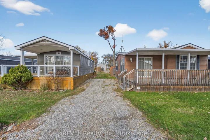 +"PublicRemarks": "Unit 252 - Monument | Vine Ridge Resort. Peaceful and private, this 2014 Northlander Chestnut double-wide offers 660 sq. ft. of bright, comfortable cottage living just steps from the neighbouring vineyard. Tucked into a quiet pocket of the resort, this is one of the best-value double-wides offered at Vine Ridge.Enjoy exceptional indoor-outdoor living with a huge extended front wrap-around deck and an impressive 24-ft enclosed hardtop room - perfect for dining, relaxing, and entertaining. A storage shed adds extra convenience and functionality.Ideal as a family summer retreat in one of Ontario's most sought-after resort communities.Financing available from $19,900 down and $229/week. Seasonal resort-open May 1-October 31. 2026 annual fees $8690 (hydro, water, septic, landscaping and grass cutting, use of the resort amenities for friends and family, full entertainment program and Airbnb options)."