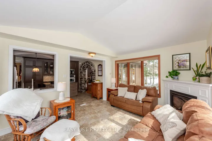 +"PublicRemarks": "*** Visit the REALTOR website for further information about this Listing *** This charming custom-built Canadiana-style home offers peaceful country living on a beautifully treed, low-maintenance half-acre lot, with no front neighbours and just 10 minutes from all essential amenities and the hospital. The home features a freshly stained (2024) stone façade and board-and-batten wood siding. Elegant stonework flows from the driveway to the front entrance and into the backyard patio, which includes a fire pit, hot tub hookup, and natural gas line for a BBQ. Mature perennial gardens surround the home, adding colour and charm year-round. Inside, rich hardwood floors span the main and upper levels. The living room features a cozy wood-burning fireplace and opens into the dining area. A beautiful stone archway connects the dining space to the kitchen, which offers granite countertops and ample cabinet space. At the rear of the home, the sun-filled solarium provides a peaceful retreat with large windows overlooking the private yard and a natural gas fireplace for comfort. A den with Murphy bed sits adjacent to a full bathroom with a walk-in tub, making the main level ideal for guests or multigenerational living. Upstairs, a lovely hardwood staircase leads to three spacious bedrooms, including a generous primary suite with a walk-in closet. A 5-piece bathroom with in-suite laundry completes the upper floor. The finished basement features a family room with electric fireplace and surround sound, a bathroom with shower, cold storage, and a cedar closet. The attached single-car garage offers direct home access. Inclusions: Kitchen and laundry appliances, Murphy bed, drapes, and blinds. Extras: Bell Fibe, Generac generator, central vacuum, top-tier water system (2022), furnace (2021), AC, hot water tank (2021), well pump (2023), backup sump (2024), vinyl flooring (2023). A rare blend of rural charm and modern convenience."
