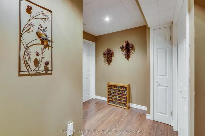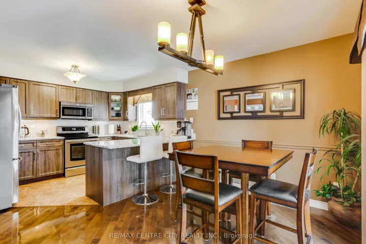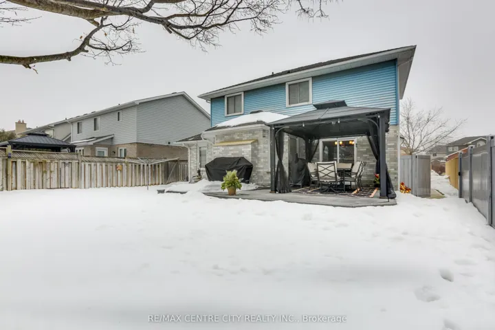 +"PublicRemarks": "This spacious 2-storey, detached home has instant appeal starting with its charming wrap-around covered front porch & welcoming sitting area. The double car garage is upgraded with a new electric vehicle charger and smart organization with an enclosed ceiling storage system. Step inside to a bright, double-height foyer & enjoy completely carpet-free living throughout the home. The main level features a generous living room anchored by a cozy gas fireplace, a convenient 2-piece powder room, and a beautifully designed kitchen complete with stainless steel appliances, abundant counter space, & a breakfast bar ideal for casual meals or entertaining. The adjoining dinette overlooks the tastefully landscaped backyard, creating a seamless indoor-outdoor connection. A large, separate dining room with double French doors offers an elegant space for hosting family gatherings & special occasions. Upstairs, you'll find 3 well-proportioned bedrooms, including a spacious primary retreat with a walk-in closet and direct access to the dual-entry 5-piece bathroom, thoughtfully designed to also serve the hallway. The fully finished basement expands your living space with a bright rec-room, a full 3-piece bath, laundry room, cold room, & impressive tucked-away storage that keeps everything organized & clutter-free. Outside, the fully enclosed backyard is ideal for entertaining, featuring a cement side walkway, composite deck, composite fencing on one side, manicured grounds and hardscape landscaping, & beautiful mature trees, including a stunning beech tree & Japanese maples in both the front & back yards. The sellers are flexible with possession & open to negotiating the furniture for buyers interested in a fully furnished option. Near Hwy 401 & Veterans Memorial Parkway, you'll enjoy quick access across the city, the airport, shopping, & nearby businesses, making everyday commuting effortless. This is a home that truly reflects pride of ownership inside and out."