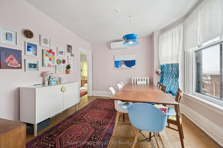 +"PublicRemarks": "One-of-a-kind Exhibition Park rental opportunity including Water, Hydro & Gas! This upper-level suite in a charming red-brick century home offers over 1,700 sq ft of bright, flexible living space with 3 bedrooms and a 4-piece bath. Flooded with natural light and a cheerful energy, the unit features two private entrances: a front main-level entry leading to a sun-filled foyer-ideal for a home office, studio, or additional storage-and a rear upper-level entrance that opens directly into the updated modern kitchen with cork flooring and a private laundry area. The kitchen flows seamlessly into the dining space, creating a warm and functional layout for everyday living. Currently configured with two bedrooms and a living room on the second floor, and a spacious third-floor primary suite with additional living and storage space, the layout is highly versatile. No matter what room you're in, each window fills the space with beautiful natural light and leafy views, creating the feeling of being canopied among the trees. Additional highlights include a private rear entrance with deck space, access to a large, private backyard (the main-floor unit has a separate fenced yard), two parking spaces, optional basement storage, and heat pumps (wall-unit A/C) throughout for year-round comfort. Enjoy the best of Downtown Guelph and Exhibition Park living - steps to trails leading straight into downtown, a short walk to Exhibition Park, and close to local shops, cafés, and everyday amenities. Preferred possession: April 15th."