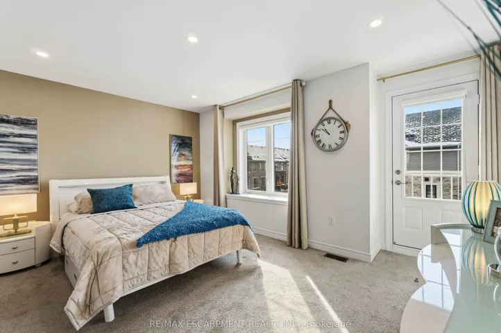 +"PublicRemarks": "Welcome to this beautifully designed 3-storey townhome in one of Hamilton's most desirable and convenient neighbourhoods. This home features a thoughtfully planned layout that blends flexibility, comfort, and modern functionality. The second level is the heart of the home, featuring a bright, open-concept kitchen, living, and dining area - perfect for entertaining or enjoying cozy nights in. Large windows invite natural light throughout, creating a warm and inviting atmosphere. On the third floor, you'll find two generously sized bedrooms, including a spacious primary retreat complete with its own private ensuite and balcony access. A second full bathroom on this level provides added convenience for family or guests. The ground level offers a versatile family room, ideal as a media space, home office, or play area, along with a 3-piece bathroom and direct access to the garage. The basement level features an additional bedroom and a dedicated laundry room, providing extra flexibility for guests, extended family, or work-from-home needs. Situated close to shopping, schools, parks, dining, transit, and easy highway access, this home combines style, comfort, and location. A fantastic opportunity to own in the Hannon community."