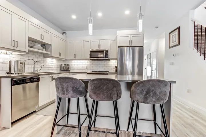 +"PublicRemarks": "Simply 360 END UNIT. 3 bedroom , 3 bathroom beautifully decorated home. An open concept main floor with a designer kitchen. Quartz countertops and tiled backsplash. All stainless steel appliances are included. 9 ft ceilings on the main and upper levels. Upgraded ceramic floors in the foyer and bathrooms. The upper level features 3 spacious bedrooms. An ensuite and 4 pc bath. Plus a laundry area. The lower level has a finished rec room and storage area. There's also a natural gas line for your bbq. Single car garage with garage door opener & remote. Close to schools, shopping and Hwy 19 for easy access to the 401. Not to mention a nearby playground. Built 2020."