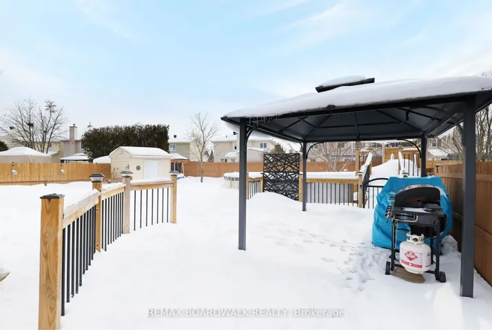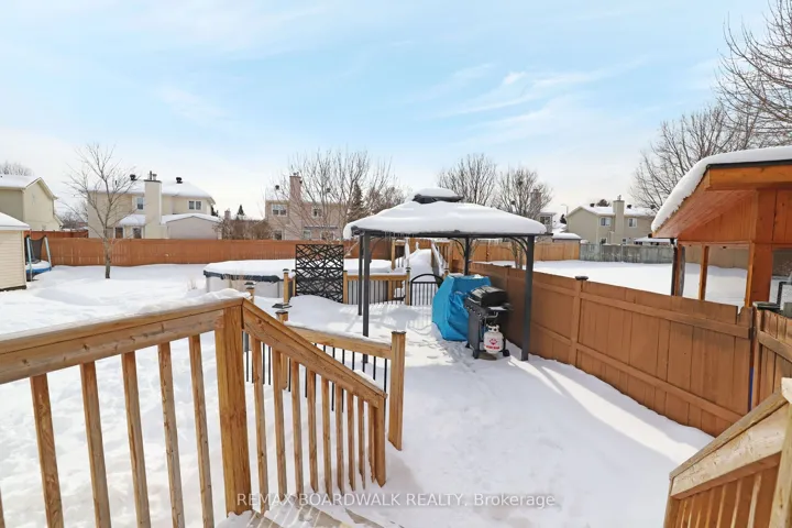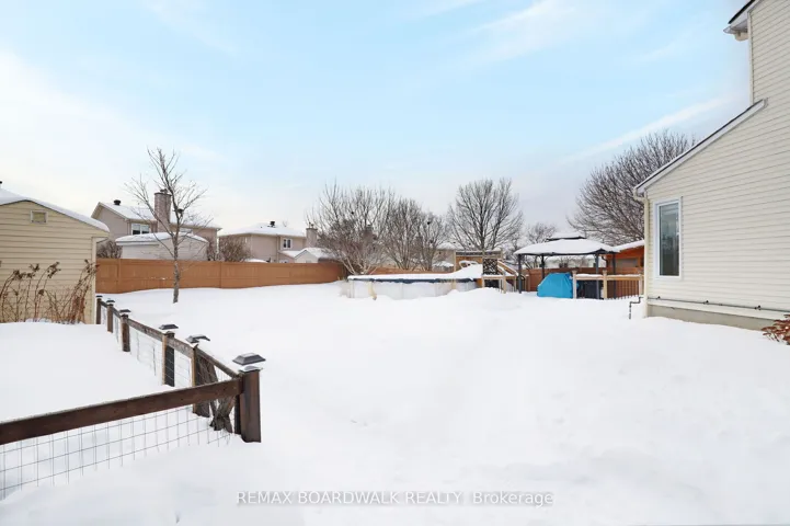 +"PublicRemarks": "Beautifully maintained move-in ready, Coscan Crimson Maple model is nestled in a highly sought-after Fallingbrook community. This spacious 3+1 Bedroom, 2.5 Bath End-unit Townhome offers a perfect blend of style, comfort & functionality for today's modern family with approx. $60,000 in quality upgrades over the years. Step into a welcoming Foyer with new ceramic flooring, which continues into the kitchen'19 & powder room, creating a fresh & cohesive look. The bright open-concept main floor is filled with natural light from oversized Palladium windows highlighting the Cathedral ceiling in the Living room. Hardwood floors flow through the Living & Dining areas adding timeless elegance. The large galley Kitchen is designed for everyday living, boasting abundant cupboard space, stylish ceramic backsplash, updated finishes, sunny Dinette with Vaulted ceilings. Patio doors lead to a multi-level deck, making indoor-outdoor living seamless & convenient for hosting Family & Friends. Upstairs, the spacious Primary Bedroom offers a walk-in closet, 4-piece Ensuite, 2 generously sized Bedrooms with ample closet space & full family Bath complete the second level. The fully finished lower level was renovated'21/23 features a bright Recroom, N/Gas Fireplace, a legal 4th Bedroom with egress window, with completed permits & properly registered. Sizable Laundry, Storage & Utility area is ideal for extended Family or Guests. Additional major updates include: Furnace'15, Roof'10/11(all dates are approx.) Garage door, opener, Windows, Doors & A/C providing peace of mind & long-term value. Outside, enjoy your oversized, landscaped yard complete with heated above-ground Pool, large vegetable garden, 2 Garden Sheds, expansive Deck, private retreat for summer relaxation, entertaining plus upgraded Front porch. Ideally located within walking distance to parks, schools, minutes to shopping, transit, exceptional value in one of Orleans' most established neighborhoods. No Offer till 7pm Feb 25/26"