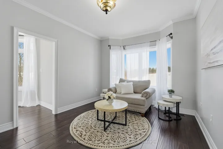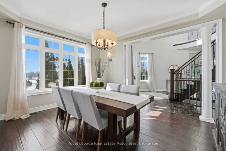 +"PublicRemarks": "Welcome to 100 Chesswood Trail, an executive custom built estate home on a quiet cul-de-sac in prestigious Chestnut Grove Estates. Set on over 8 acres with breathtaking countryside views, this spectacular home has it all. Featuring over 6,000 sq ft of finished living space with 6+2 bedrooms, 5.5 bathrooms, this home makes a stunning first impression with a 19-foot, two-story foyer, marble flooring, and grand 'Scarlett O'Hara' Staircase. The wide-plank hardwood floors lead to a bright two-storey sitting room with floor-to-ceiling windows and a stone gas fireplace. The kitchen offers granite countertops, stainless steel appliances, and an oversized island, with a breakfast area opening to the backyard deck. The main level also includes a family room, formal dining room, office, versatile bonus room (bedroom or den), and a mudroom with built-ins, including separate exterior access and access to the 3-car garage. Upstairs, five bedrooms enjoy ensuite or shared Jack-and-Jill baths, ensuring privacy and convenience for family or guests. The luxurious primary retreat features a spa-inspired 5-piece ensuite, custom walk-in closet, and private sitting area. The fully finished walk-out basement has a separate entrance, offering excellent in-law suite potential, and includes a kitchen rough-in, large recreation area, media room, two bedrooms, a 3-piece bath, gym or multi-purpose room, and ample storage. Additional highlights include geothermal heating and cooling, pot lights, rounded wall corners, 200 AMP service, professionally landscaped grounds, and patterned concrete walkways. Conveniently located 15/20 minutes to Waterdown, Burlington, Guelph, Cambridge, this home offers quick highway access and is your perfect picturesque city retreat."