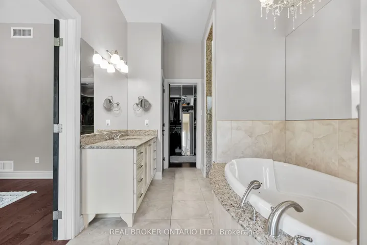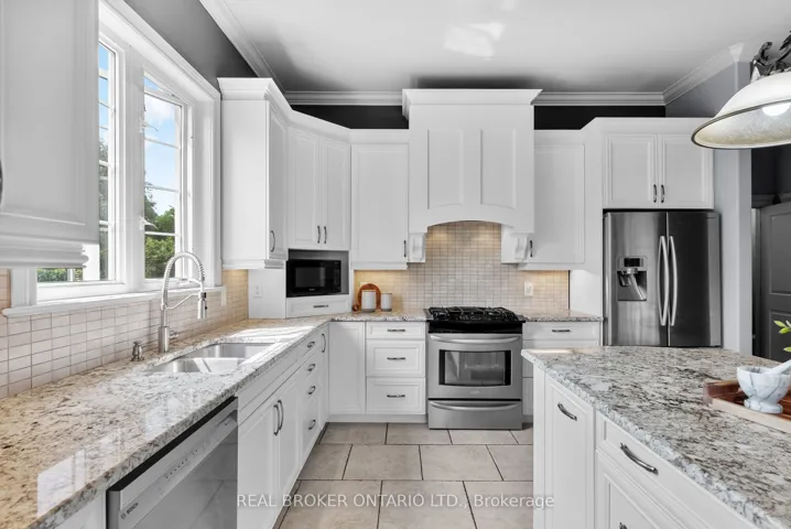 +"PublicRemarks": "Custom-built executive bungalow in Emerald Creek Estates offering approx. 5,500 sq. ft. of finished living space, ideally situated on a private 3/4-acre lot with no rear neighbours. With 6-bedrooms and 5-bathrooms, this home is perfect for larger families or those seeking space, privacy, and a peaceful retreat surrounded by nature, all just 20 minutes from downtown Ottawa! A grand foyer welcomes you into the home, opening to a spacious family room with a dramatic floor-to-ceiling stone fireplace and graceful archways that flood the space with natural light. The large eat-in kitchen is a chefs dream, featuring granite countertops, a generously sized centre island, stainless steel appliances, gas range, and separate prep sink. Entertain in style in the stunning formal dining room with 12' ceilings, a striking arched window, and refined architectural detailing. The main level offers three spacious bedrooms, each with its own ensuite bathroom for ultimate comfort and privacy. The luxurious primary suite is privately tucked at the rear of the home and features its own gas fireplace, a spa-inspired 5-piece ensuite with double vanities, whirlpool tub, glass-enclosed shower, water closet, as well as a large walk-in closet. The expansive lower level adds incredible versatility with three additional bedrooms, a Jack & Jill bathroom, large rec room with gas fireplace and custom built-ins, multiple storage rooms, and a separate garage entrance, ideal for multi-generational living. Outdoors, enjoy a tranquil backyard oasis surrounded by mature trees, with a large deck and hot tub perfect for summer evenings. The fully insulated 3-car garage is ideal for hobbyists or car lovers, and a whole home standby generator is included. Just minutes to top-rated golf, quaint restaurants, cafés and shops in Manotick Village, the Bowesville LRT station, and the newly opened Hard Rock Hotel & Casino. Enjoy country estate living with this exceptionally built home! Some photos virtually staged."