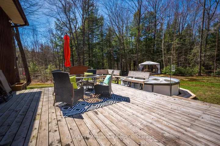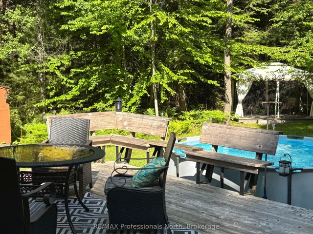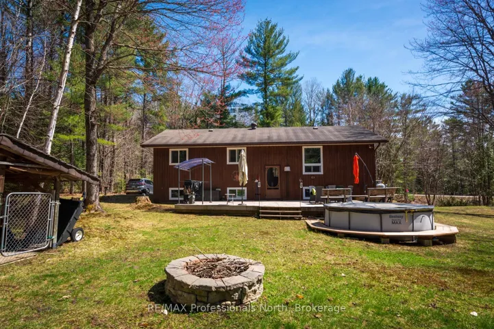 +"PublicRemarks": "Escape to your own personal retreat with this beautifully maintained country bungalow, perfectly situated on 2.6 acres of lush, wooded privacy. Surrounded by trees and natural landscape and accentuated with perennials gardens, this home offers the tranquility of rural living with modern comfort and charm. Step inside to find a warm, inviting interior featuring an open-concept living and dining area, kitchen with ample cupboards and counter space, and large windows that bathe the space in natural light, with finishes that reflect the home's countryside setting. The bungalow includes three bedrooms upstairs including a master with private two-piece ensuite, and a lower level office/den, a large rec room perfect for a family, laundry room with large utility/work room with storage. Outside features a large back deck perfect for sipping morning coffee or hosting summer barbeques, and an additional deck with gazebo set amongst the trees and wildlife. This home has been immaculately maintained and updated with new windows and doors, composite deck out front, flooring, R60 insulation, drilled well and Generac generator. Carrying costs are minimal for this energy-efficient home. Ask for details! Whether you are looking for a full-time residence or a weekend getaway, this serene country property offers a rare combination of charm, comfort and security, and seclusion and all just a short drive from town amenities of local Port Sydney for shopping, beautiful beaches and falls; or minutes from downtown Huntsville or Bracebridge. Perfect location for commuters of either town. Why live on a postage stamp in town, when you can own a small slice of heaven within town's reach."