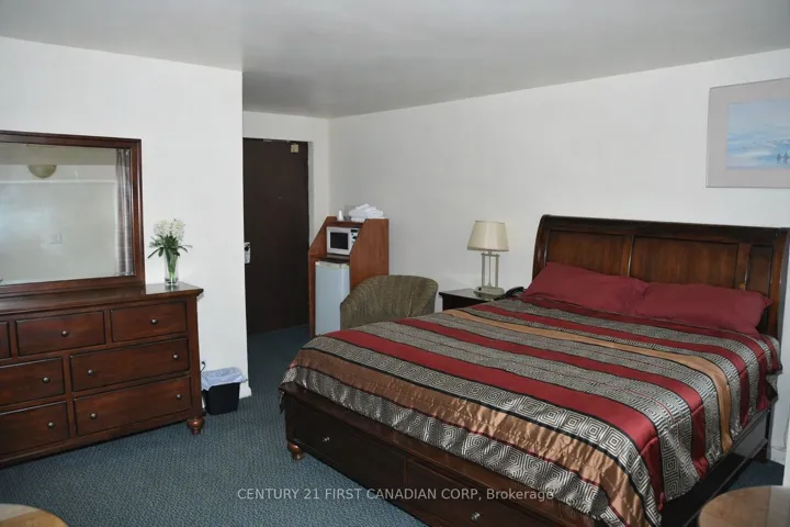 +"PublicRemarks": "Profitable, well-established motel with owner's residence located on approximately 1.82 acres along Sarnia's high-traffic Golden Mile. Minutes to Hwy 402 and the Bluewater Bridge to Port Huron, USA. Offering 27 rooms, 51 rental beds total, with a mix of 1, 2 & 3-bed layouts, including several oversized rooms and 5 rooms with kitchenettes. Strong current occupancy with long-term stays providing consistent income. Some rooms have been updated, with a couple currently in progress, offering additional upside. Front owner/operator living quarters features 2 bedrooms, 2 full baths, including ensuite with steam sauna, full kitchen, living room, in-suite laundry, gas furnace with central air, and updated electrical. Ample parking for 40+ vehicles, including transport trucks. All furnishings, appliances, and security equipment included. Walking/biking paths nearby to restaurants, Lambton Mall, public transit, and amenities. Excellent opportunity for owner-operators or investors seeking a cash-flowing hospitality property in a prime commercial corridor with future development potential."