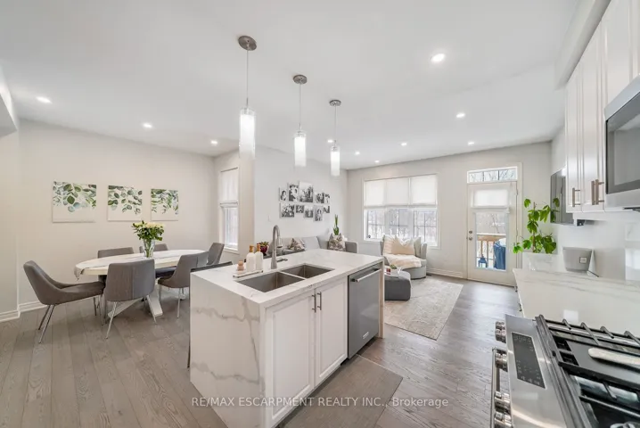 +"PublicRemarks": "Welcome to this beautifully updated freehold townhome - with no condo fees - backing onto green space with a walking path and uninterrupted views of nature. With forested trails just beyond your fence and serene views from your rear windows, morning coffee walks and evening strolls just got a whole lot better. The fully fenced backyard features newer interlocking stone and mature greenery, creating a private outdoor setting. Inside, the layout truly stands out. The main floor was designed for gathering around the kitchen island, while also offering a separate breakfast area and a formal dining space; this is a rare and highly functional combination in a townhome. The back windows overlook the green space, bringing in natural light and peaceful views year-round. Extensively updated throughout, the home features hardwood flooring, pot lights, updated appliances, quartz countertops, smart switches, and several thoughtful modern upgrades. Exceptional storage can be found across every level of the home. Upstairs there are three generously sized bedrooms, two full bathrooms, and a beautifully renovated laundry room with quartz countertops, custom cabinetry, and backsplash. The spacious primary suite includes a beautifully reimagined ensuite that was reconfigured to allow for a larger shower and a more functional layout. The finished basement adds even more versatility with a full bathroom, recreation space, and additional storage; a perfect additional space for entertaining, guests, or a home gym. The garage adds exceptional functionality with overhead storage and a thoughtfully designed layout that has interior access through a separate transition space; so you're not stepping directly into the main living area; along with rare direct access to the backyard, making outdoor living and yard maintenance easy! Thoughtfully updated and meticulously maintained, this home delivers space, smart design, privacy, and lifestyle in one of Waterdown's most desirable communities"