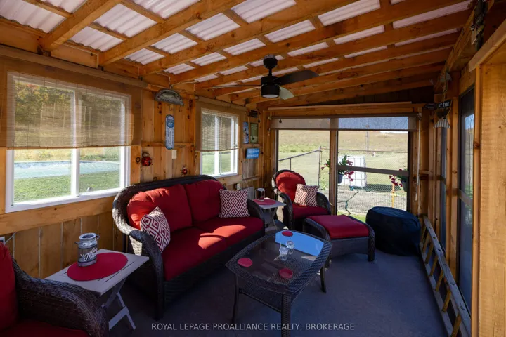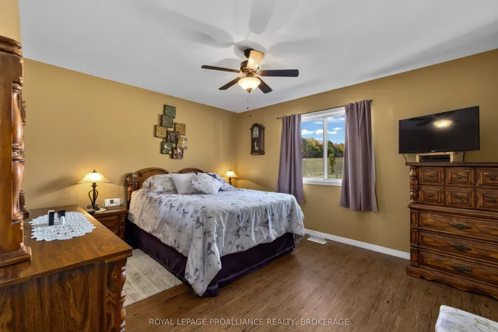 +"PublicRemarks": "Beautifully updated and meticulously maintained raised bungalow, set on a private and manicured one-acre lot just five minutes north of the 401. Offering 2,000 square feet of finished living space, this wonderful family home features 2+2 bedrooms, 2 full bathrooms, formal dining room, a main floor family room, a bright solarium and a lower level rec/media room warmed by a cozy propane stove. Recent updates include refinished kitchen and bathroom cabinetry, new countertops, updated flooring, a new above-ground pool and a custom screened-in sun-room designed for extended summer enjoyment. Positioned high above the road, the property offers sweeping views of rolling farmland and a peek of the Rideau waterway. Immaculately maintained with every detail thoughtfully cared for, this home is truly move-in ready."