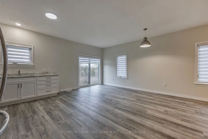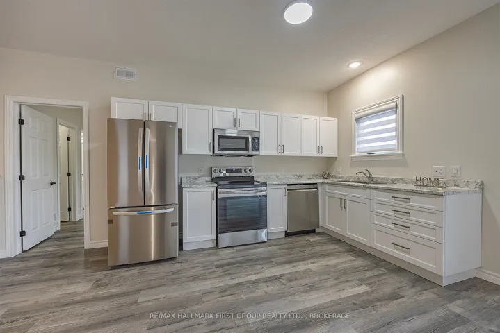 +"PublicRemarks": "Welcome to 201 Creighton Drive, better than new walkout bungalow set on a premium lot in one of Odessa's most desirable neighbourhoods. Backing onto protected greenspace with access to tranquil walking trails, this exceptional home offers privacy, beauty, and everyday convenience just minutes from the 401, Kingston, and Napanee. Thoughtfully designed with neutral finishes and quality upgrades, this open-concept home features 9-foot ceilings on the main level, colour-matched black vinyl windows, and coordinating porch railings and pillars for striking curb appeal. The spacious living and dining areas are filled with natural light, creating a warm, welcoming atmosphere for both relaxing and entertaining. The stylish kitchen offers ample space for a large island, and comes equipped with five modern appliances and custom professional blinds. Enjoy the ease of main floor laundry, and retreat to a serene primary bedroom complete with a walk-in closet and private ensuite bath. A second bedroom and full main bath offer flexible space for guests, family, or a home office. The lower level is a standout feature, with a bright walkout basement overlooking green space, large windows, and a rough-in for a 3-piece bathroom ready for your personal touch and future expansion. The home also includes central air conditioning, a paved driveway, and no rear neighbours. Whether you're a professional couple, downsizer, or someone seeking peaceful, low-maintenance living close to amenities, this beautiful home offers a rare combination of comfort, quality, and location."