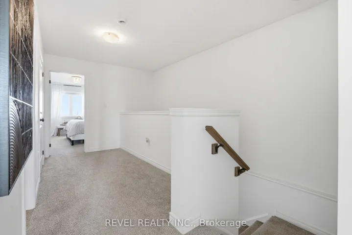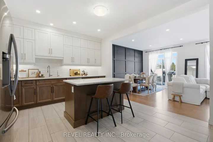 +"PublicRemarks": "Welcome to this beautifully designed townhouse backing onto peaceful conservation lands, offering privacy and tranquil views right from your backyard. Thoughtfully crafted with open-concept living in mind, this home is perfect for both everyday comfort and effortless entertaining.The spacious kitchen is the heart of the home, featuring a functional layout ideal for hosting family and friends. Large windows throughout fill the main floor with natural light, and the walkout leads to a beautiful deck where you can relax and enjoy the serene surroundings.Upstairs, you'll find three generous bedrooms, including a primary retreat complete with a walk-in closet and private ensuite. Exceptional design details and expansive windows create a bright, airy feel throughout.Additional highlights include a garage, low-maintenance living, and an unfinished basement with fantastic potential for a future recreation room or additional living space.Conveniently located close to amenities, this home offers the perfect blend of comfort, style, and nature."