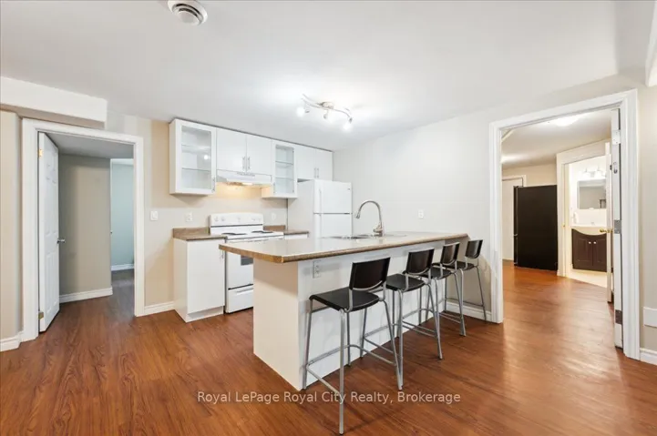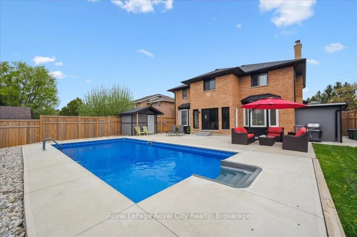+"PublicRemarks": "Welcome to 9 Kortright Road East, where elegance meets everyday functionality in one of Guelphs most desirable neighborhoods. This beautifully renovated, two-storey brick home offers exceptional curb appeal with a double garage, interlock driveway, modern garage/front door, and mature landscaping. Step inside to a grand foyer with a curved wooden staircase and soaring ceilings, setting the tone for the refined interiors throughout. The heart of the home is the stunning chefs kitchen, featuring an oversized quartz island with seating for ten, sleek black cabinetry, a built in pot-filler, and statement lighting. Stunning glass sliding doors and picture windows provide panoramic views and seamless access to the resort-style backyard with a heated pool ideal for summer entertaining and relaxing. Enjoy the thoughtfully designed layout with spacious principal rooms, including a formal living room and cozy family room with accent wall and brick fireplace. Upstairs, the primary suite is a luxurious retreat, featuring a 4pc bathroom with soaker tub and walk-in closet. The second bedroom includes a secondary bedroom/dressing room which has its own entrance to the shared 4pc bathroom, while the third bedroom is also generous in size. Downstairs, find a 2-bedroom basement apartment with ample living space. Separating the apartment is a door that takes you through to the exercise room. Enjoy the footprint of your basement while having an entirely separate suite. This meticulously maintained home is move-in ready with countless upgrades and located just minutes from top-rated schools, the University of Guelph, shopping, transit, and parks."