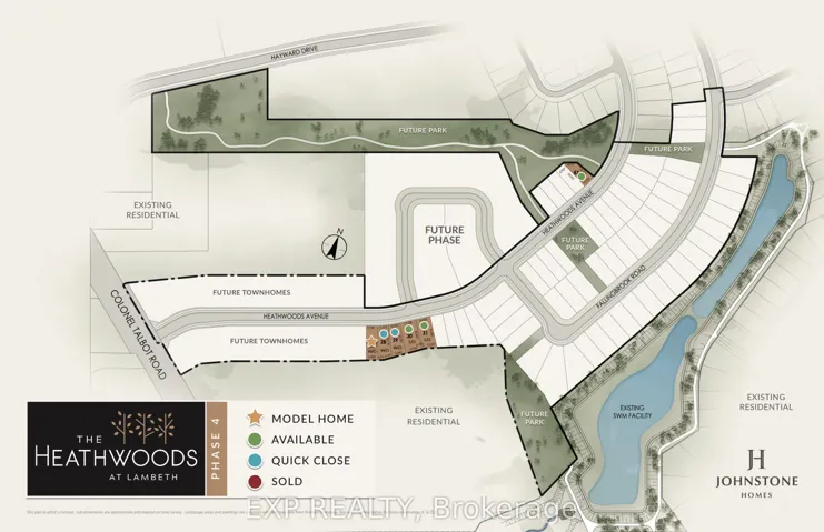 +"PublicRemarks": "To be built by Built by Johnstone Homes, Open Houses held at Model located at 6875 Heathwoods. The Ellington is a to-be-built 4-bedroom, 3-bath detached home offering approximately 1,979 sq. ft. of finished space on a 48-ft lot backing onto mature trees in southwest London's desirable Heathwoods community. Additional 40', 52' and 58' lots are available, including quiet south-facing options with look-out or walk-out basements. Builder-finished basements and decks can also be arranged, with site plans and floor plans available upon request and two finished model homes open for viewing weekends.Inside, nine-foot ceilings, engineered hardwood in main living areas, and generous finish allowances create a modern, adaptable interior. A vaulted dining ceiling enhances the open-concept layout, ideal for everyday living and entertaining. Upstairs, four spacious bedrooms include a primary suite with double vanity and glass-tiled shower, while an unfinished basement with 3-piece rough-in offers future potential. Located near Colonel Talbot amenities, Lambeth Community Centre, and quick 401/402 access."