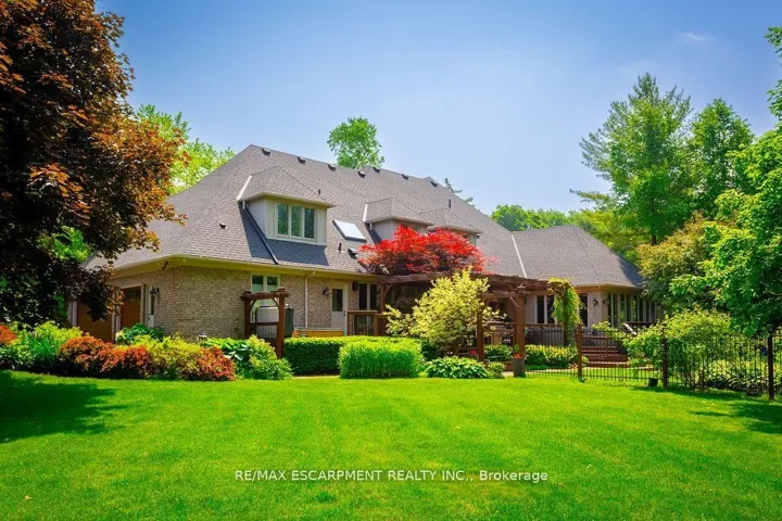 +"PublicRemarks": "The pinnacle of privacy. Discover a rare sanctuary where extreme seclusion meets modern sophistication. Tucked away at the end of an exclusive cul-de-sac in the village of Carlisle, this 2.12-acre estate is surrounded by forest and farmland, offering a level of tranquility and security increasingly rare in the GTA. Designed for the modern family and work-from-home lifestyle, this residence offers over 7,791 sq ft of timeless design. A soaring two-storey foyer sets the tone, complemented by two dedicated libraries or offices ideal for remote executives or business owners. The expansive floor plan transitions seamlessly from productive workdays to refined entertaining and family living. The light-filled chef's kitchen features custom cabinetry, soft-close drawers, a wood island, marble countertops, premium appliances, and a generous breakfast area. A vaulted great room opens to an oversized sunroom with panoramic views of the private backyard. The upper level offers a secondary library or office leading to the luxurious primary suite with spa-inspired ensuite, soaker tub, rain shower, and expansive dressing room, along with three additional spacious bedrooms and a five-piece bath. Meticulously updated for complete turn-key peace of mind, the home features a high-efficiency furnace and AC (2024), an upgraded chef's kitchen with most appliances replaced in 2024, EV charging in the three-car garage, and a raised vegetable garden. Resort-style backyard living includes a saltwater gunite pool with cascading rock waterfall, hot tub, expansive deck, and pergola. The fully finished walk-up lower level with private entrance offers exceptional versatility for a multi-generational suite, guest wing, or private wellness studio. Experience the stillness of your private two-acre forest in all four seasons. LUXURY CERTIFIED."