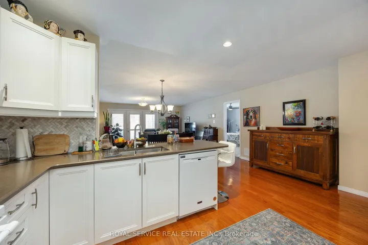 +"PublicRemarks": "Beautiful West-Central Garden Bungalow in a Fabulous Location!Welcome to this bright and spacious bungalow situated in one of Peterborough's most desirable west-central neighbourhoods - just minutes to the hospital, Hwy 115, shopping, and all amenities.This thoughtfully designed home offers an open-concept kitchen, dining, and living area with gleaming hardwood floors and abundant natural light. The updated kitchen (2018) features Corian countertops, refaced cabinetry, and a stylish backsplash - perfect for everyday cooking and entertaining alike. Triple French doors off the great room open to a level deck and private, landscaped yard, ideal for relaxation or summer gatherings.The large primary bedroom includes a walk-in closet and a beautifully updated 3-piece ensuite (2025) with a modern walk-in shower. Convenient main-floor laundry with walk-out to the 1.5-car garage adds comfort and practicality.The finished lower level provides exceptional extra living space with a generous recreation room, third bedroom, office or optional fourth bedroom, full bath, and plenty of storage.A perfect blend of charm, comfort, and convenience - this home is ready for you to move in and enjoy!"