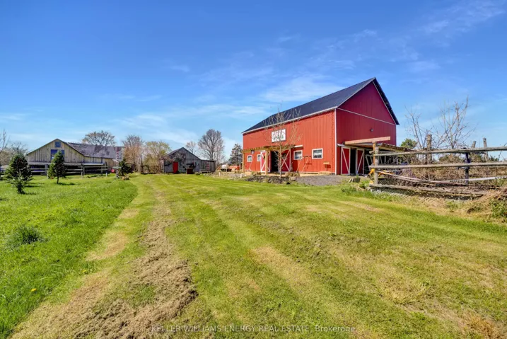 +"PublicRemarks": "Welcome to a beautifully restored mid-19th century heritage home set on approximately 2.66 acres of mature countryside just minutes from Napanee and Highway 401. Ideally located 2.5 hours from Toronto, 3.5 hours from Montréal and 30 minutes from Kingston, this idyllic property offers peaceful rural living with excellent regional access. A public boat launch to Lake Ontario is only 10 minutes away. Extensively renovated inside and out, the 2,400 sq ft farmhouse blends historic charm with modern comfort. Set back from the road along a 350 ft tree-lined driveway, the home enjoys a private, dreamlike setting surrounded by mature trees and open sky. The residence features three large bedrooms and three bathrooms, a spacious country kitchen with high-end appliances, original pine and oak plank flooring, a wood-burning fireplace, high-speed connectivity and significant mechanical upgrades including 200-amp service, high-efficiency furnace and A/C, updated insulation and water treatment systems. The renovated red barn offers over 3,200 sq ft of flexible space and is currently used as a gym, office, movie theatre and games room. With 100 AMP service and hardwired internet, it provides exceptional versatility for studio, workshop, storage or live-work use. An additional 3,000 sq ft in the grey barn and sheds offers further space for storefront potential, artist loft, recreation, storage or parking. The grounds feature mature trees, gardens and open recreational areas. A brand-new fully engineered Class 4 septic system valued at approximately $40,000 has been prepaid and scheduled for installation, offering long-term peace of mind. A rare opportunity to own a distinctive rural property combining heritage character, modern infrastructure and versatile outbuildings."