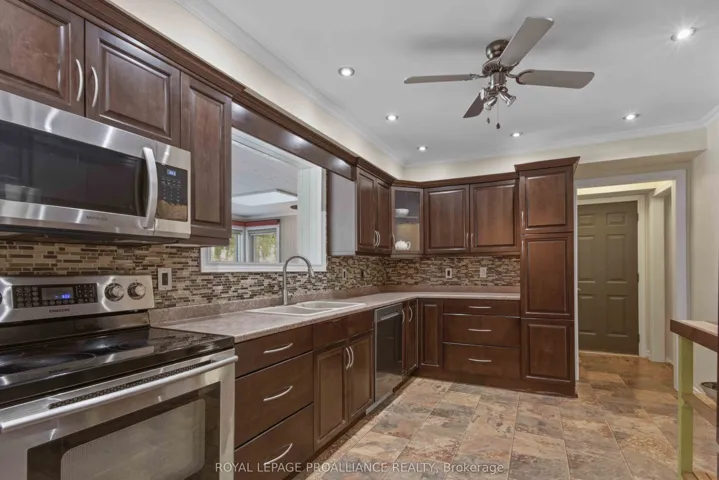 +"PublicRemarks": "Welcome to this beautifully maintained two-story home, conveniently & privately situated; perfect for family living. Featuring three bedrooms + office, a finished basement, and a heated double car garage, there's plenty of space for everyone. The large functional kitchen offers ample cabinetry and workspace, while overlooking the fenced in, oversized, and private backyard with in-ground swimming pool. The ample west facing sunroom, with gas fireplace, is flooded with natural light and makes for a great dining room, family room, office, or even a gym. It's big enough it can have two uses. The front facing living room features a large window and hardwood flooring. Upstairs is the large primary bedroom, two more bedrooms, and main washroom. Downstairs is the cozy rec room with another gas fireplace, office, large utility room and cold storage. Located between Trenton and Belleville with excellent 401 access and walking distance to the nearest park. Video walkthrough available."