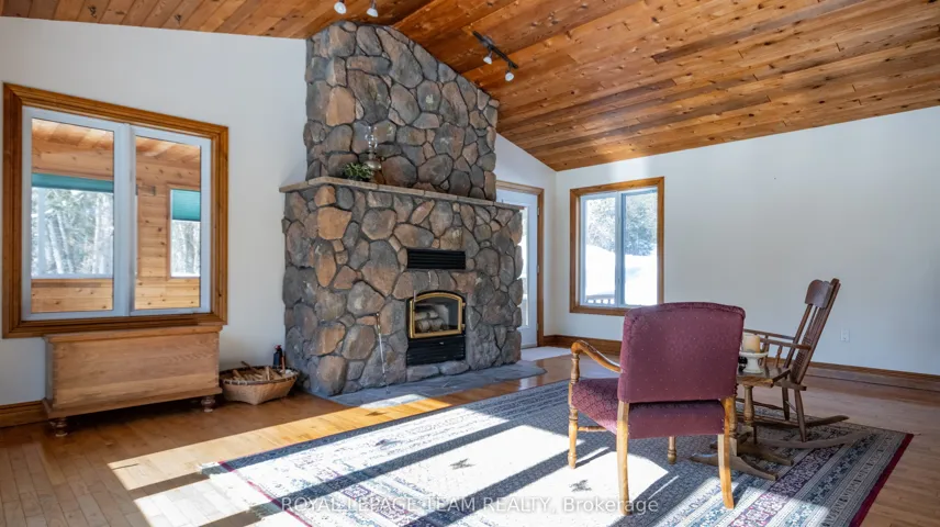 +"PublicRemarks": "Looking for both waterfront and privacy, it doesn't get any better than this. 400 Feet of sandy shoreline on 5 plus private acres. Lake Hardwood is a very quiet spring fed pristine lake. Experience dragonflies hatching, call of the loons, great blue herons, and watch the sunsets from your dock. In the fall the Lyndoch hills are on fire with brilliant fall colours. The 1600 square foot bungalow is built on a level lot and features open concept design with lots of windows to let the sunlight shine throughout. The living room features a floor to ceiling cultured stone fireplace with wood insert, along with a cathedral ceiling finished in cedar with gleaming hardwood floors. In the evenings you can retire to the 3 season spacious sunroom and enjoy the views. The main floor has two large bedrooms and a 3 pc bath with a whirlpool tub to relax at the end of the day. A fully functioning Findlay cookstove adds a special touch to the main floor area. The lower level is finished with a large recreation room and a 3 piece bath with shower. The lower level features a walkout to the lakeside. The laundry room is quite large and can easily be converted into a bedroom, moving the laundry room to the utility room. There is a large 32 x 23 foot garage/workshop fully insulated, wired and has woodstove heat. There is also a large wood shed and a drive shed for storage. Rogers has just erected a new cell tower close by."