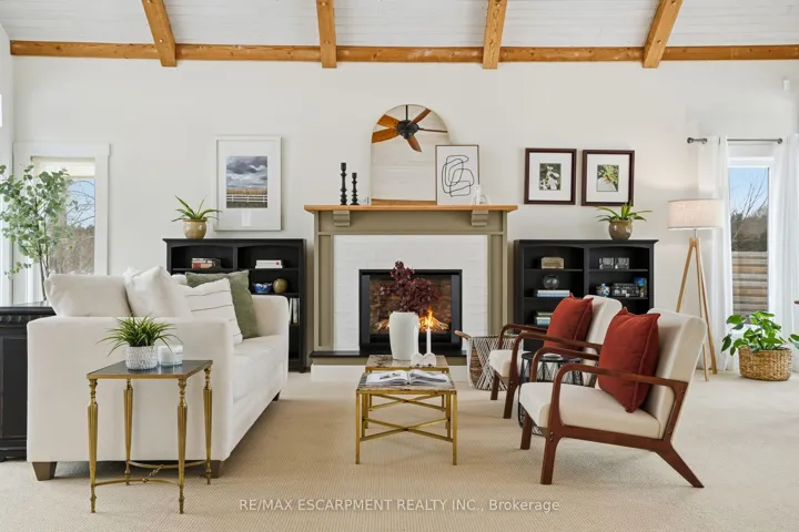 +"PublicRemarks": "Beautifully positioned on a serene 196 x 240-foot lot, welcome to 250 Old Onondaga Road East, a spacious, custom-built home located in a quiet rural setting in Brant County. Featuring 3 generous bedrooms, 2.5 bathrooms, and a thoughtfully designed floor plan with large principal rooms, this home impresses from the moment you step inside. A fabulous foyer welcomes you into the home, where abundant natural light greets you. In the great room, your attention naturally gravitates to the soaring 15-foot vaulted ceiling, the stunning Valor fireplace, and the perfectly framed windows that connect your sightlines to the surrounding outdoors. The dining room is both elegant and captivating, featuring a 17-foot vaulted ceiling, tall windows and beautiful maple hardwood. The kitchen is thoughtfully appointed with stainless steel appliances, abundant cabinetry, and generous counter space. Completing the main floor is a mudroom with inside access from the garage and a tasteful 2-piece bathroom. Make your way upstairs to the spacious primary bedroom, a private retreat of its own, featuring a generous walk-in closet and a 3-piece bathroom. Two additional bedrooms share a 4-piece bathroom. The carefully selected details and design, including an interior balcony, accent walls, and the 12-foot vaulted ceiling in the primary suite, enhance the home's overall character and style. The large, open basement offers the opportunity to create your own layout and design, complete with a roughed-in bathroom and a dedicated laundry area. Enjoy ample parking for vehicles in the double garage and expansive driveway. Breathtaking in every season, the backyard features a large deck, hot tub, firepit, and open green space, with the sights and sounds of local wildlife providing a serene, natural backdrop. This peaceful yet connected location is just a short drive to schools, amenities, golf courses, and conservation areas, with easy access to major commuting routes."
