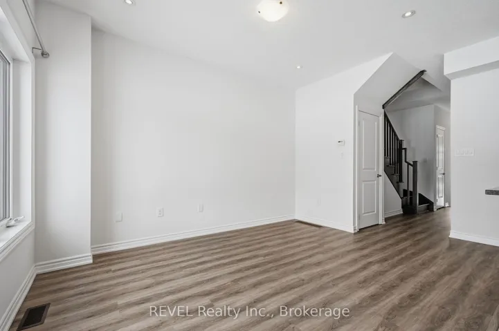 +"PublicRemarks": "This pristine, two-year-old freehold townhouse in the Hunter's Pointe community offers a clean, move-in-ready layout with 3 bedrooms and 2.5 bathrooms. The home features a stone-covered front porch and an open-concept main floor highlighted by a stylish kitchen with quartz countertops and newer stainless steel appliances. Large windows throughout provide plenty of natural light, and solid wood stairs lead to the second level where you'll find a spacious primary bedroom with a walk-in closet and a 3-piece ensuite. Functional additions include interior garage access and a large, unfinished basement with laundry and a bathroom rough-in, offering great potential for future storage or living space. Located near the Welland Canal, the property is steps away from parks and trails while remaining conveniently close to the Seaway Mall, groceries, golf courses, and Highway 406 for easy commuting."