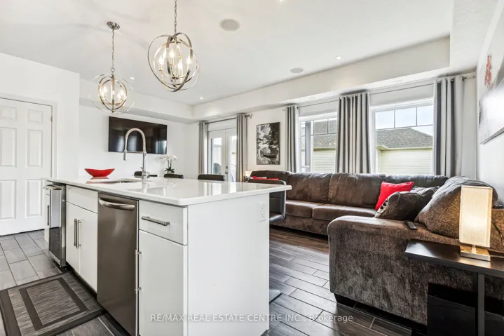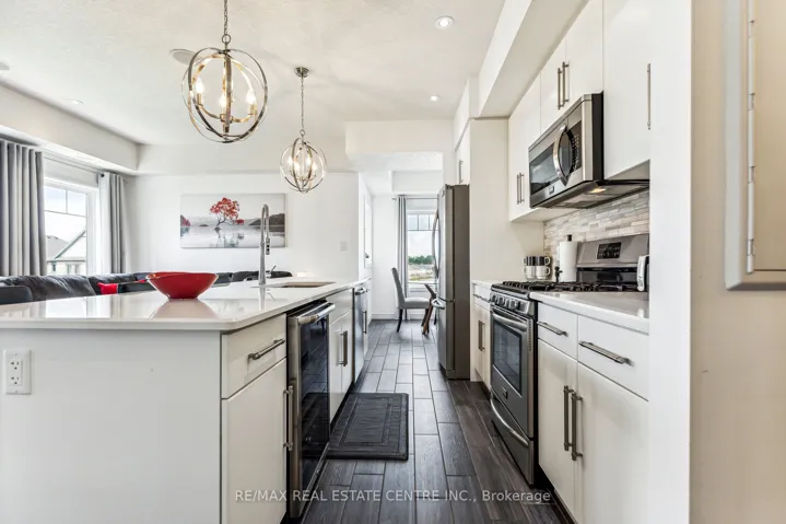 +"PublicRemarks": "Experience refined living in this former model suite - an exceptional opportunity to own a beautifully upgraded multi-level townhome. Originally designed as the model suite, this residence showcases premium finishes and thoughtful enhancements throughout, offering incredible value for today's buyer. The fully finished main level features a warm and inviting family room, a convenient laundry area, and direct access to the oversized garage, complete with upgraded ceiling storage and a Ring Smart Security System. On the second level, the stunning open-concept kitchen is designed to impress - featuring stainless steel appliances, a spacious island, a gas stove, a wine fridge, and elegant quartz countertops. The adjoining living room with built-in ceiling speakers opens to a private balcony, perfect for entertaining. A dedicated dining area and stylish 2-piece powder room complete this level. Smart home upgrades, including smart light switches, a Nest Thermostat, and a Ring Alarm System, add modern comfort and peace of mind. The third level offers a luxurious primary retreat with a spa-inspired ensuite, double vanity, and generous walk-in closet. A second bedroom and sleek 4-piece bathroom provide flexibility for family, guests, or a home office. At the top, the rooftop terrace delivers breathtaking views, ample storage, and an outdoor water supply - an ideal space to unwind or entertain under the open sky. Ideally located just minutes from Highway 401, with seamless access to Cambridge, Guelph, and Waterloo, and close to top-rated schools, parks, and amenities. Enjoy nearby attractions, including the Grand River and Chicopee Ski & Summer Resort. A rare opportunity to secure a former model home loaded with upgrades - offering exceptional value, lifestyle, and long-term investment potential. Don't miss your chance to own this remarkable property."