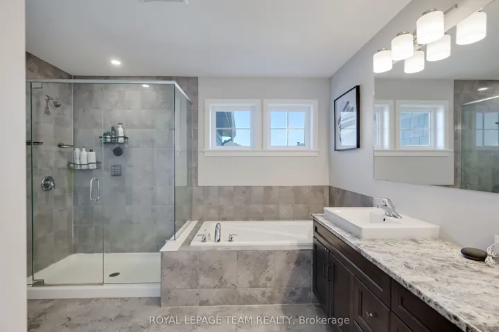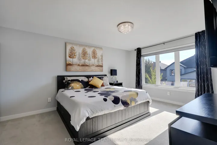 +"PublicRemarks": "This elegant 6-bedroom, 5-bathroom home by Cardel Homes combines modern comfort with timeless design in one of Kanata South's most desirable Blackstone neighbourhoods. Built in 2019, the Aberdeen model offers over 3,700 sq ft. of finished space, featuring a classic brick-and-stone façade, Wi-Fi exterior lighting, and an extra-wide double garage with a handy workspace. Step inside to a bright foyer with polished tile, designer wallpaper, and a sparkling chandelier that sets a warm, refined tone. The main floor boasts 9-foot ceilings, matte maple hardwood, and an open layout that's both stylish and functional. Going through walk-in Pantry and butler pantry, the kitchen is a highlight with granite countertops, brushed-steel backsplash, full-height custom cabinets, pull-out spice racks, built-in waste bins, and a sleek range hood. The dining area opens through a large sliding patio door to the backyard, creating an easy flow for gatherings. The family room impresses with 17-foot ceilings, full-height windows, a tiled fireplace wall with Murano glass, and a striking 10-foot chandelier. A guest suite with an adjoining bath offers flexible use as an office or in-law suite. A mud room connects to the large garage. Upstairs, the primary bedroom feels like a retreat with a walk-in closet and a 5-piece ensuite featuring double sinks, a glass shower, and a soaking tub. 4 additional bedrooms, 2 with vaulted ceilings, provide space for family and guests, while the second-floor laundry adds convenience. The finished basement expands the living area with a large rec room, a bedroom, and a full bath - perfect for a home theatre or gym. The fenced backyard is private and low-maintenance, ideal for relaxing or entertaining. Surrounded by parks, trails, top schools, shops, and transit, it delivers the perfect mix of sophistication and warmth - the kind of place you walk into and instantly feel at home."