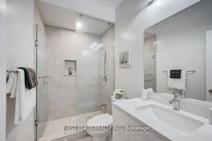 +"PublicRemarks": "Beautifully maintained former model home in the heart of Alcona, just minutes from Lake Simcoe! This bright, open-concept bungalow features 9' flat ceilings, fresh paint, and brand-new laminate flooring throughout. Renovated washrooms and a modern eat-in kitchen with granite counters and S/S appliances. Walk out to a massive 14'x32' deck overlooking a private, treed greenbelt-no rear neighbors! King-sized primary bedroom with W/I closet and ensuite. The fully finished basement boasts a separate concrete side entrance, perfect for extended family. Move-in ready, filled with natural light, and close to schools, parks, and beaches. A must-see!"