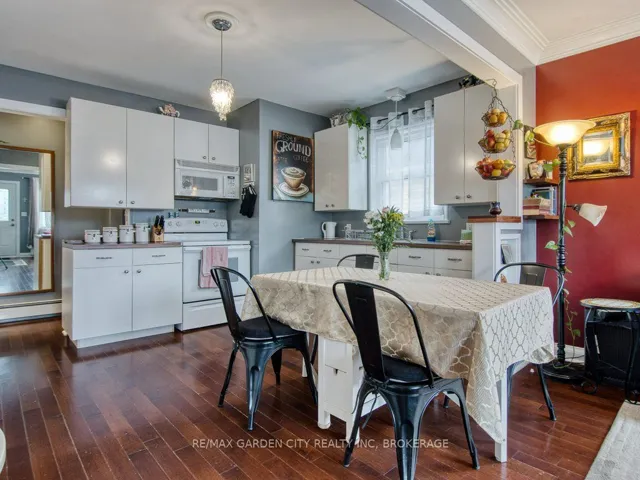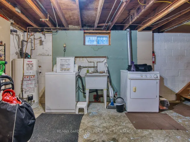 +"PublicRemarks": "Owner occupied bungalow. Legal inlaw/duplex. Two homes in one. Well maintained clean living space. Many recent upgrades from shingles to kitchen, windows to bathroom. Must be seen to be appreciated. One side has an open concept kitchen, dining and living room, 4 piece bathroom, 2 bedrooms on the main floor plus a high dry basement with a legal 3rd bedroom, rec room, laundry, storage and workshop. Second side has a separate entrance, main floor open concept eat in kitchen with pantry and living room with patio doors to backyard wood deck, 4 piece bathroom plus 2 main floor bedrooms. Lower level has a laundry room plus a large open area with insulated walls and heat, ready to be finished into that rec room, bedrooms, gym, etc. 2 Separate hydro meters, 2 separate hot water tanks, natural gas boiler with 2 heat zones. Private paved 2 car driveway, flag stone walkway, raised gardens, fishpond with water garden, shed. Great neighbours and quiet area. Walk to school, churches, many amenities and only a few minutes to the QEW. Value for your dollar."